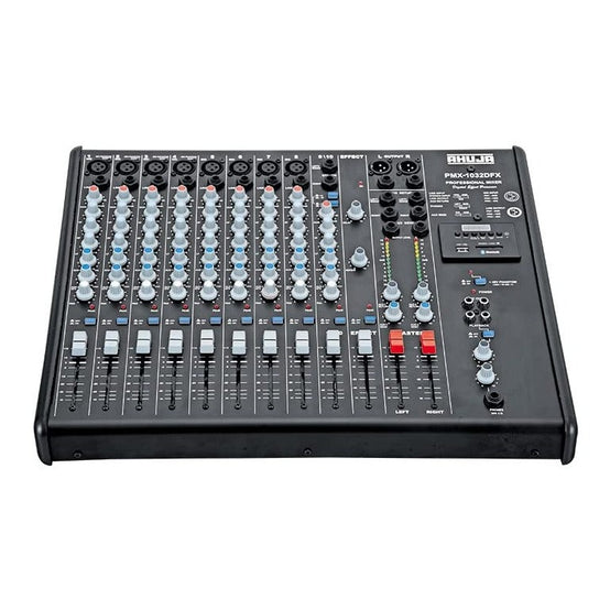 - Precise Controls: Features high precision 60mm slide faders, individual channel ON/OFF switches, and LED peak indicators.