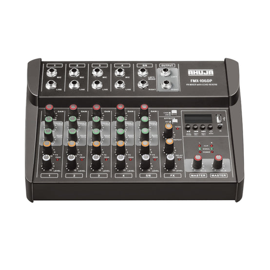 - Effects and MP3 Player: Includes separate FX level controls for each channel and a built-in MP3 player with recording, playback, USB, and Bluetooth features.