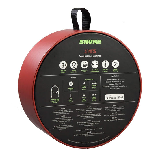 Shure AONIC 5 Wired Sound Isolating Earbuds, High Definition Sound + Natural Bass, Three Drivers, Secure in-Ear Fit, Detachable Cable, Durable Quality, Compatible with Apple & Android Devices - Red