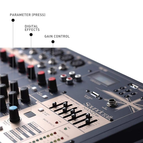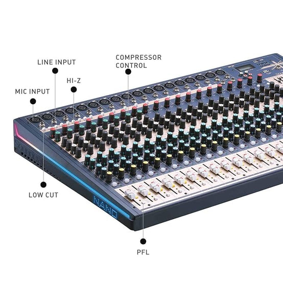 - The Soundcraft NANO M24 mixer features 8/16 mono and 4 stereo input channels with ultra-low noise discrete microphone preamps and +48V phantom power, ensuring pristine audio quality for live and recording scenarios.
